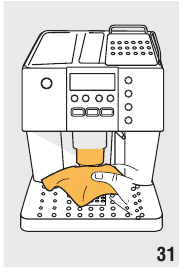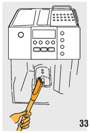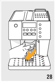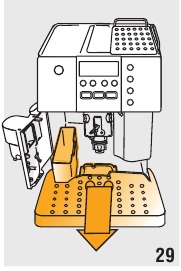 | De koffie komt niet uit de tuiten, maar rond de servicedeur. | De gaatjes in de tuiten zijn verstopt. | Reinig de tuiten met een tandenstoker (afb. 29). |