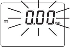- Na een paar seconden toont het display "-0.0-". De meter is nu op nul gezet en klaar voor kalibratie. De knipperende "READ" (Lezen) vraagt om de kalibratiestandaard te lezen.