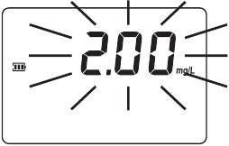 Over Range (Over bereik): Een knipperende waarde van de maximale concentratie duidt op een overschrijding van het bereik. De concentratie van het monster ligt buiten het geprogrammeerde bereik: verdun het monster en voer de test opnieuw uit.