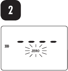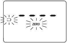 - Wanneer de zoemer kort klinkt en het LCD streepjes weergeeft, is de meter klaar. De knipperende "ZERO" (Nul) geeft aan dat het instrument eerst op nul moet worden gezet.