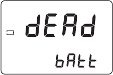 Dead battery (Batterij leeg): Dit geeft aan dat de batterij leeg is en moet worden vervangen. Zodra deze indicatie wordt weergegeven, wordt de normale werking van het instrument onderbroken. Vervang de batterij en start de meter opnieuw.