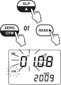 - Druk op ZERO/CFM (Nul/Bevestigen) om de kalibratiedatum op te slaan.