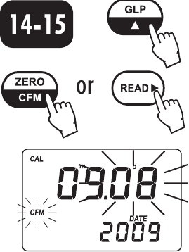 - Wanneer de juiste maand is ingesteld, druk op ZERO/CFM (Nul/Bevestigen) of READ (Lezen)