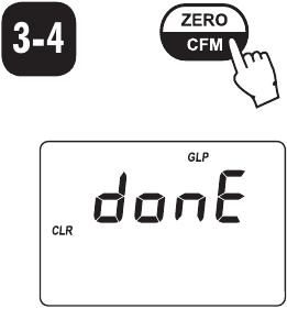 - Druk op ZERO/CFM (Nul/Bevestigen) om de fabriekskalibratie te herstellen of druk nogmaals op GLP/