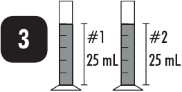 - Vul twee maatcilinders (#1 & #2) tot de 25 mL-markering met het monster.