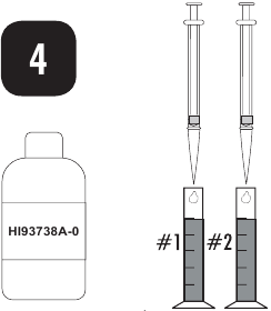 - Voeg 0.5 mL HI93738A-0 Reagens A toe aan elke cilinder (#1 & #2), sluit ze en keer ze meerdere keren om te mengen.