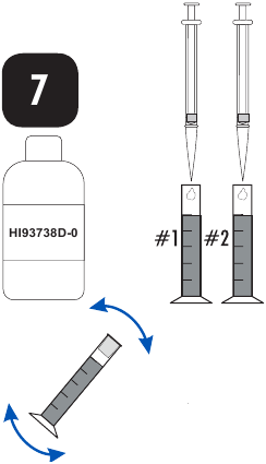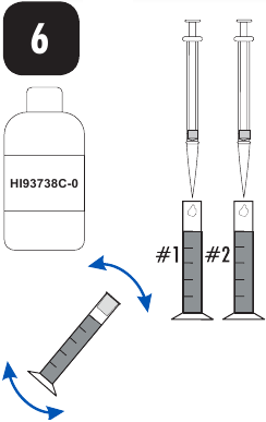 - Voeg precies 0.5 mL HI93738C-0 Reagens C toe aan elke cilinder (#1 & #2), sluit ze en keer ze meerdere keren om te mengen.