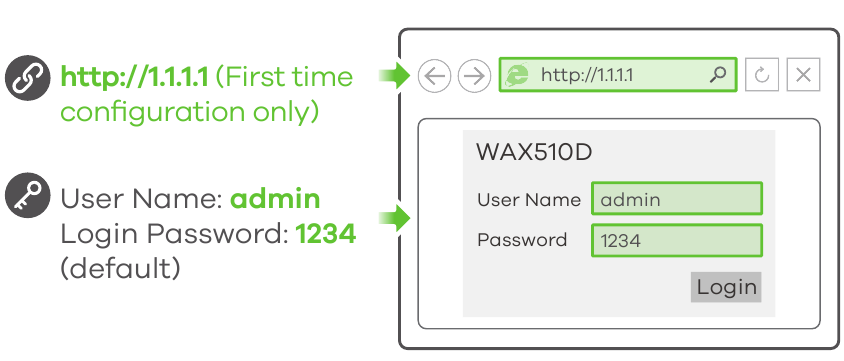 Opmerking: 1.1.1.1 is alleen voor de eerste installatie. Het is niet bruikbaar nadat de WAX510D is geconfigureerd.