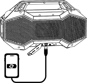 | USB Charging Port (USB-oplaadpoort): Party Rocker™ Go heeft een powerbank-functie, waarmee u een smartphone, tablet of ander apparaat kunt opladen met behulp van de interne batterij van het apparaat (capaciteit: 4000mAh/10.8v 43.2Wh) door hier een kabel aan te sluiten. Zie Bediening > De USB-oplaadpoort gebruiken voor meer informatie. |