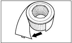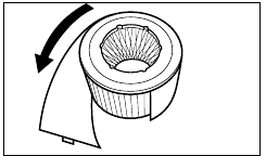- Wikkel het voorfilter voorzichtig rond het HEPA-filter zodat de uiteinden elkaar raken. Maak de uiteinden aan elkaar vast met de meegeleverde sluiting.