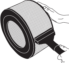 - Nadat u het filter hebt gestofzuigd, wikkelt u het voorfilter om het HEPA-filter en plaatst u de hele eenheid terug in de interne kamer van de luchtreiniger (zie "Filters verwijderen/vervangen").
