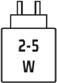 Het vermogen dat door de oplader wordt geleverd, moet tussen minimaal 2 watt liggen, vereist door de radioapparatuur, en maximaal 5 watt om de maximale laadsnelheid te bereiken.