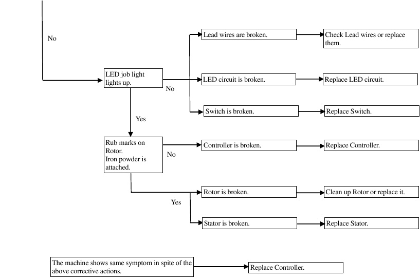 Controleer de items in het volgende stroomdiagram in volgorde van boven naar beneden. (De beschrijving van het item verwijst naar het SCHEMATISCH DIAGRAM. (Fig.32) Na correctieve actie keert u terug naar het begin van de probleemoplossing en controleert u opnieuw.