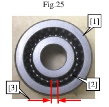- Binnen in Hammer [1] moeten 24 stuks Steel balls 3.5 [2] en een opening [3] zijn die overeenkomt met één stuk Steel ball 3.5, zoals weergegeven.