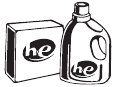 - High Efficiency "HE" (Hoog rendement "HE") wasmiddelcompartiment
