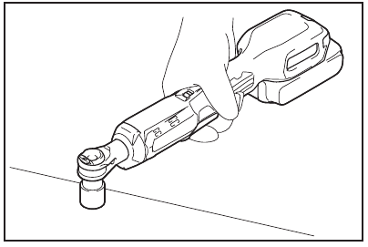 Houd het gereedschap stevig vast en plaats de dop over de bout/moer. Zet het gereedschap aan en draai vast. Wanneer de bout/moer de zitpositie bereikt, stopt het gereedschap automatisch.