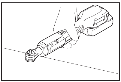 U kunt het gereedschap gebruiken als een handratelsleutel door het gereedschap in de richting van de pijlen te draaien, zoals afgebeeld. In het bijzonder bij het losdraaien van een stijve bout/moer, draait u deze eerst met de hand los en zet u vervolgens het gereedschap aan.