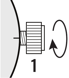 Skyv kronen HELT INN (mot klokken) og begynn deretter å vri med klokken til den er forsvarlig skrudd ned.