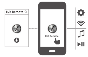 HK Onyx kan betjenes via H/K Remote-appen som er tilgjengelig i App Store for Apple-produkter eller Google Play for Android-produkter. Du kan bruke H/K Remote-appen til å streame musikk til, og kontrollere HK Onyx via smarttelefonen eller nettbrettet ditt.