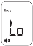 Når du bruker JXB-182-termometeret, kan meldingen "LO" vises på skjermen. I dette tilfellet er temperaturen som analyseres under det valgte måleområdet, enten mindre enn 32,0 °C (89,6 °F) i Body Mode (Kroppsmodus).