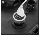 - Fjern støvhetten fra ladekontakten og plugg inn den tilhørende kontakten fra strømforsyningen. (E)