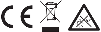 Mulig farlig stråling! Ikke se inn i lyset! Kan være farlig for øynene dine.- Når produktet oppbevares i en ryggsekk eller står ubrukt over lengre tid, må du fjerne batteriet for å forhindre utilsiktet aktivering eller batterilekkasje.