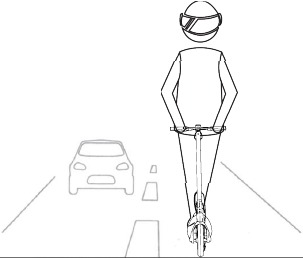 Ikke trykk på gassen når du går ved siden av sparkesykkelen.