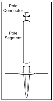Merk: For å sikre stabilitet, sørg for at alle deler er koblet godt sammen. Ikke bruk nedadgående trykk på stolpene for å slå pluggen ned i bakken.