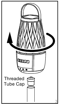 - Når stolpesegmentene er koblet til, legg til den gjengede rørhetten på toppen av det siste stolpesegmentet. Plasser TahitiTM Speaker slik at hullet på bunnen av høyttaleren er på linje med gjengene på toppen av stolpefestet. Skru forsiktig TahitiTM Speaker på den gjengede hetten til den sitter fast. Ikke stram for mye.