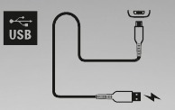- PLUGG DEN ANDRE ENDEN AV KABELEN INN I EN USB-STRØMKILDE. LED-INDIKATOREN LYSER UNDER LADING.