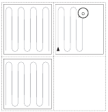 for å starte automatisk rengjøringsmodus. Roboten vil forlate ladestasjonen etter å ha blitt slått på, rengjøre i "Z"-rute, og deretter rengjøre området langs veggen og avgrense et annet område på 4 m x 4 m.