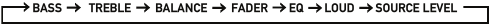 | Lydkontroller | Trykk kort på volumknappen for å velge mellom Bass, Diskant, Balanse, Fader, EQ, Loud og Source Level.![]() |