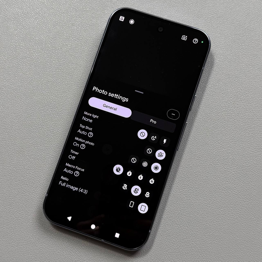 Start Kamera-appen på din Google Pixel 10 Pro. - Få tilgang til kamerainnstillingene