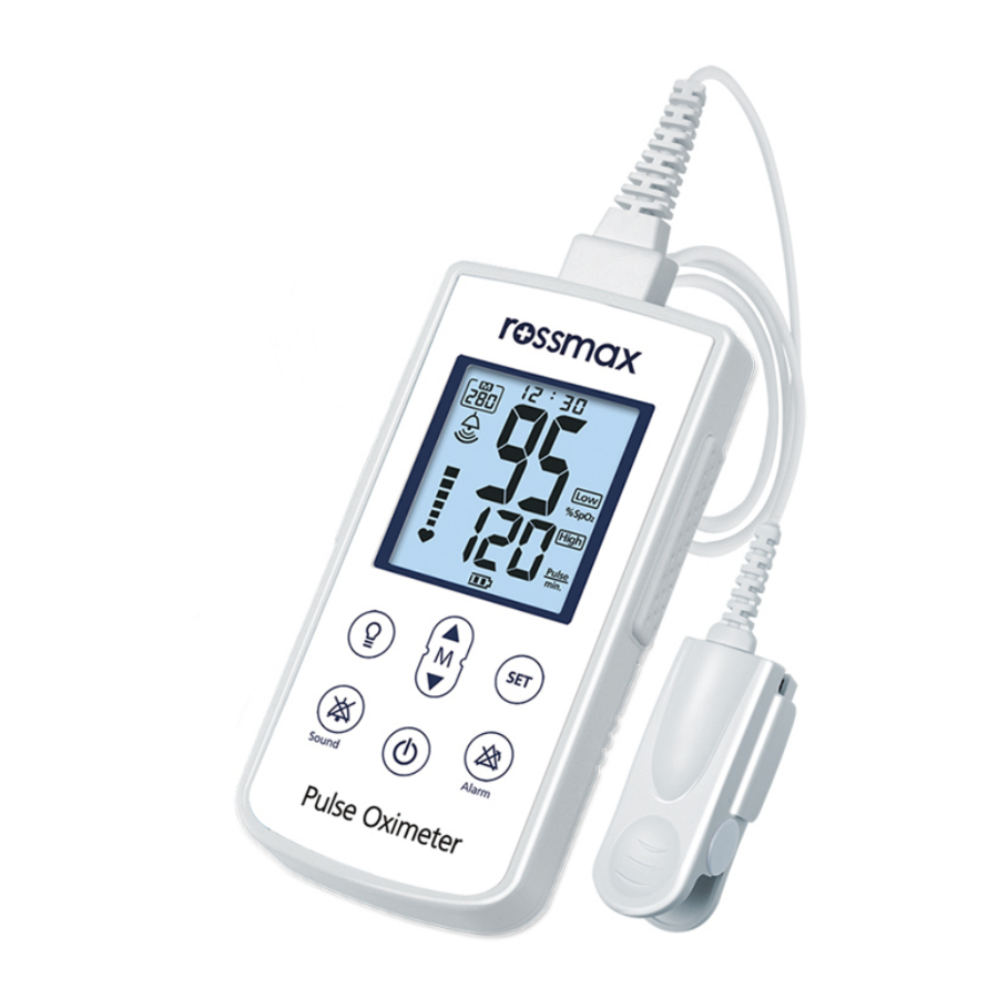 Pulsoksymetr ręczny Rossmax służy do pomiaru saturacji krwi tlenem (SpO2) i tętna, a także do natychmiastowego wydawania ostrzeżeń. Jest to urządzenie nieinwazyjne przeznaczone do doraźnej kontroli u dorosłych, dzieci i niemowląt z odpowiednią sondą stosowaną w domu, szpitalu i klinikach. Sonda zawiera podwójne źródło światła i fotodetektor.