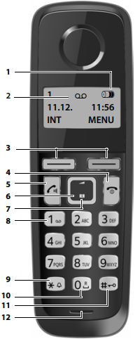 Dzwonki włączone/wyłączone (naciśnij i przytrzymaj); przy otwartym połączeniu: przełączanie z wybierania impulsowego na wybieranie tonowe (naciśnij krótko) - Klawisz 0/klawisz Flash