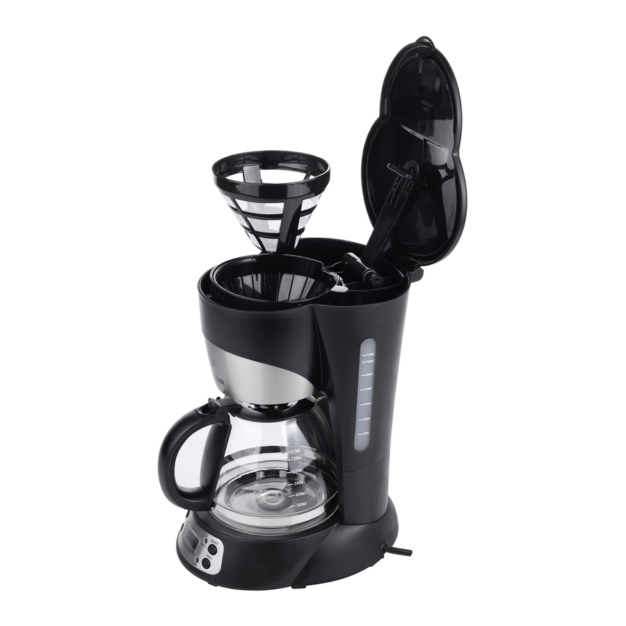 - Napełnij zbiornik żądaną ilością czystej wody pitnej. Umieść papierowy filtr do kawy w wyjmowanym filtrze lub użyj tylko wyjmowanego filtra, w zależności od potrzeb.