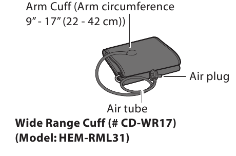 | Cuff Circumference: | Fits arm circumferences 9" to 17" (Pasuje na obwód ramienia od 9" do 17") (22 cm to 42 cm) |