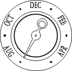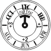 - Obracaj koronkę, aby obrócić wskaźnik roku, aż pojawi się żądane wskazanie. Kontynuuj obracanie koronki, aż miesiąc stanie się regulowany.