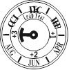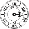 Przykład: Pozycja wskazówki wyświetlania miesiąca (lipiec)