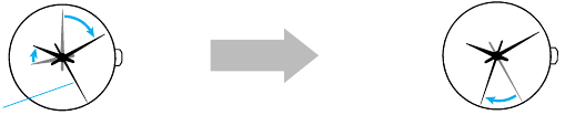 - Gdy zegarek jest w trybie oszczędzania energii, wskazówki przestają się poruszać, ale wbudowany układ scalony (IC) nadal oblicza czas. Gdy zostanie wygenerowana pewna ilość energii elektrycznej, wskazówki zegarka zostaną automatycznie ustawione na czas zachowany w zegarku.