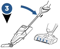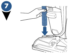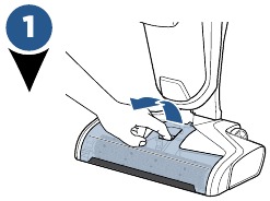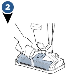 - Wymień szczotkę, wkładając koniec szczotki do prawej strony stopy. Następnie zablokuj uchwyt, naciskając go w dół.