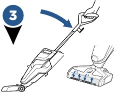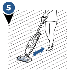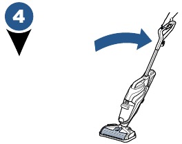 - Odchyl korpus urządzenia do tyłu, aby uruchomić obracanie się szczotki. Aby zatrzymać obracanie się szczotki, należy postawić urządzenie pionowo.