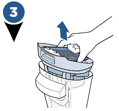 - Wyjmij filtr z górnej części zbiornika na brudną wodę, pociągając go do góry.
