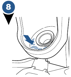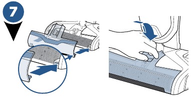 - Wymień okienko szczotki, dopasowując najpierw oba uchwyty okienka szczotki do krawędzi stopy. Następnie wciśnij okienko z powrotem na miejsce, aż usłyszysz kliknięcie.