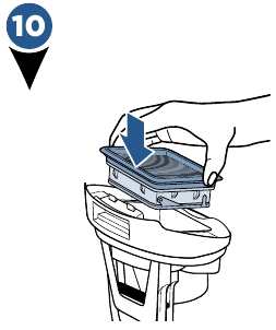 - Umieść filtr odkurzacza z powrotem w górnej części zbiornika na brudną wodę.