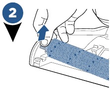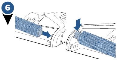 - Wymień okienko szczotki, dopasowując najpierw uchwyty okienka szczotki do krawędzi stopy. Następnie wciśnij okienko z powrotem na miejsce, aż usłyszysz kliknięcie.