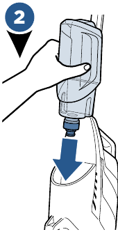 - Z tyłu urządzenia wyrównaj zbiornik na czystą wodę z rowkami i wsuń zbiornik na miejsce, aż usłyszysz kliknięcie.