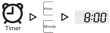 Status wyświetlacza odnosi się do rzeczywistego produktu; Naciśnij przycisk "Timer" (Timer), aby przejść do trybu regulacji ustawionego czasu, a następnie naciśnij przycisk "Hour" (Godzina) lub "Minute" (Minuta), aby dostosować ustawiony czas. (Gdy nie ma przycisków Timer ""Hour" (Godzina) i "Minute" (Minuta), naciśnij przycisk "Timer" (Timer), aby dostosować ustawiony czas)