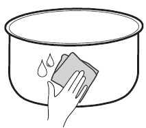 - Przetrzyj dno i zewnętrzną powierzchnię wewnętrznego garnka czystą szmatką.