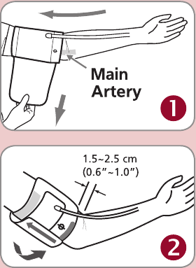 ![Rossmax - MW701f - Zakładanie mankietu - Krok 2 Zakładanie mankietu - Krok 2]()